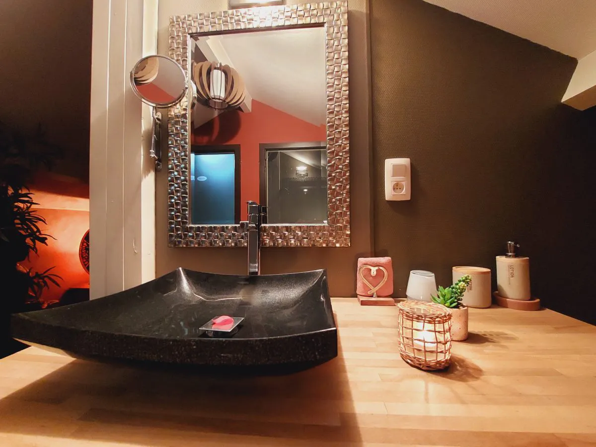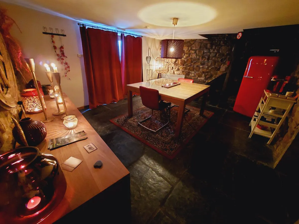 « L’Eden » est un espace privatif situé en Belgique (Theux) de 180 m2 de bien-être, à l’ambiance feutrée et chaleureuse, où tout est conçu pour rendre votre séjour romantique à souhait. Situé à l’orée d’un bois invitant au calme et aux jolies balades, ce coin de paradis est annexé à notre maison de charme. Vous disposez d’un jacuzzi intégré, d’un sauna traditionnel finlandais en forme de fût de chêne, d’un fauteuil massant, d’un poêle à pellets et d’une table d’hôtes agréable et reconnue.